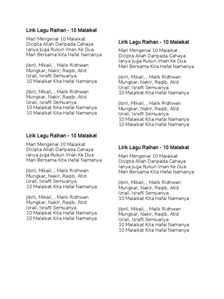 10 Malaikat Lirik Lagu Durrah Pdf