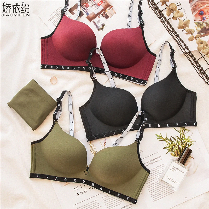 2019 Fashion Sederhana Bahasa Inggris Huruf Sexy Bra Set Pakaian Mulus Empuk Push Up Bra Kecil Dada Wanita Bra Dan Celana Dalam Set Bra Set Singkat Aliexpress